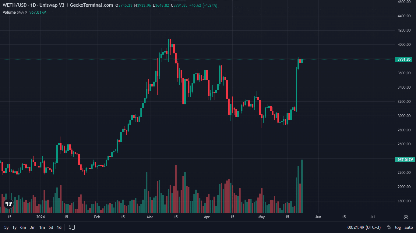 The Ethereum price has soared by almost 45% in the past two weeks, mirroring the surge seen in the Bitcoin price in the run up to the approval of spot Bitcoin ETFs in January.