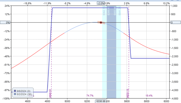 Any bull put spreads took a beating on that day, August 5, 2024, because the direction and volatility had gone significantly against the trade.