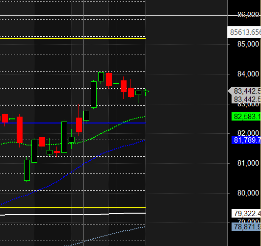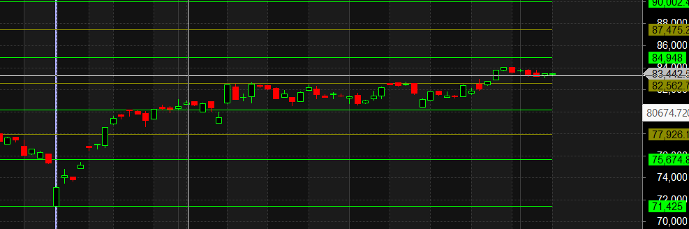 Price has closed above its 20 SMA trend is buy on dips till above 83000.