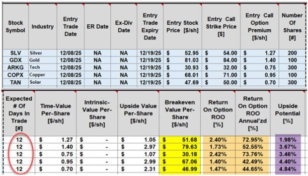 Initial per- trade 12-day calculations using the BCI Trade Management Calculator (TMC): Initial time-value returns