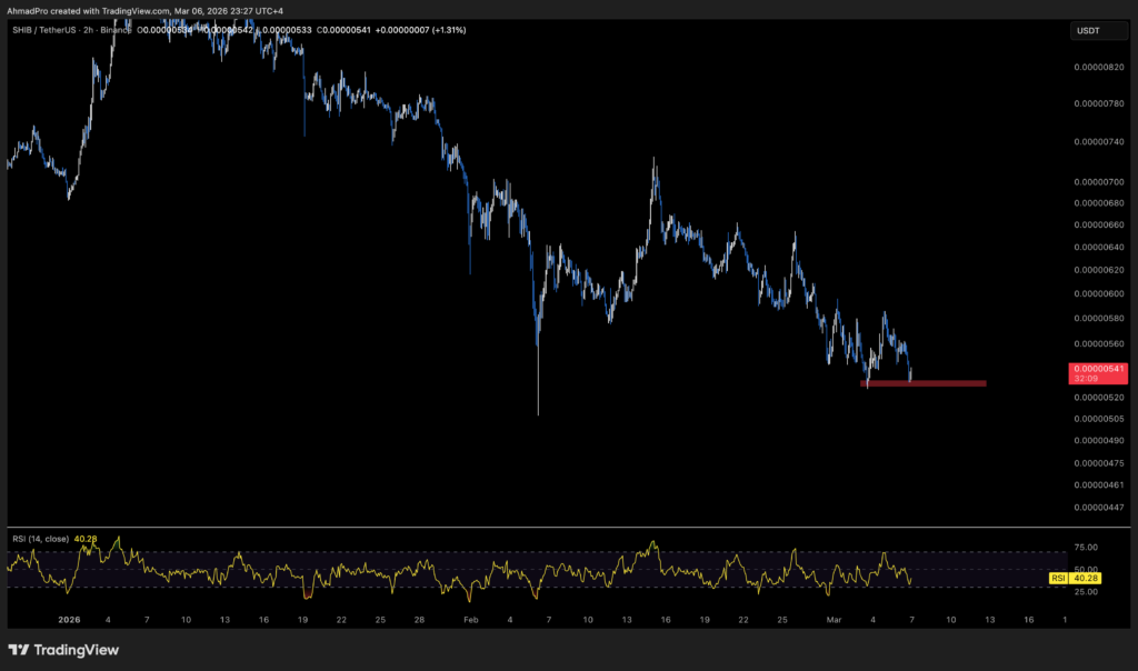 But the price has not reacted the same way. SHIB is still hovering around $0.000005379 and struggling to hold a key support level as the broader crypto market pulls back.