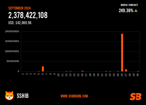 Shibburn revealed in an X post that almost 2.4 billion Shiba Inu tokens ($42,069) were burned in September with 131 transactions. This represents a 249% spike in the monthly burn rate, as 680 million SHIB tokens were burned in August. This is a positive development for the Shiba Inu ecosystem, considering the impact that the token burns could have on SHIB’s price in the long term.