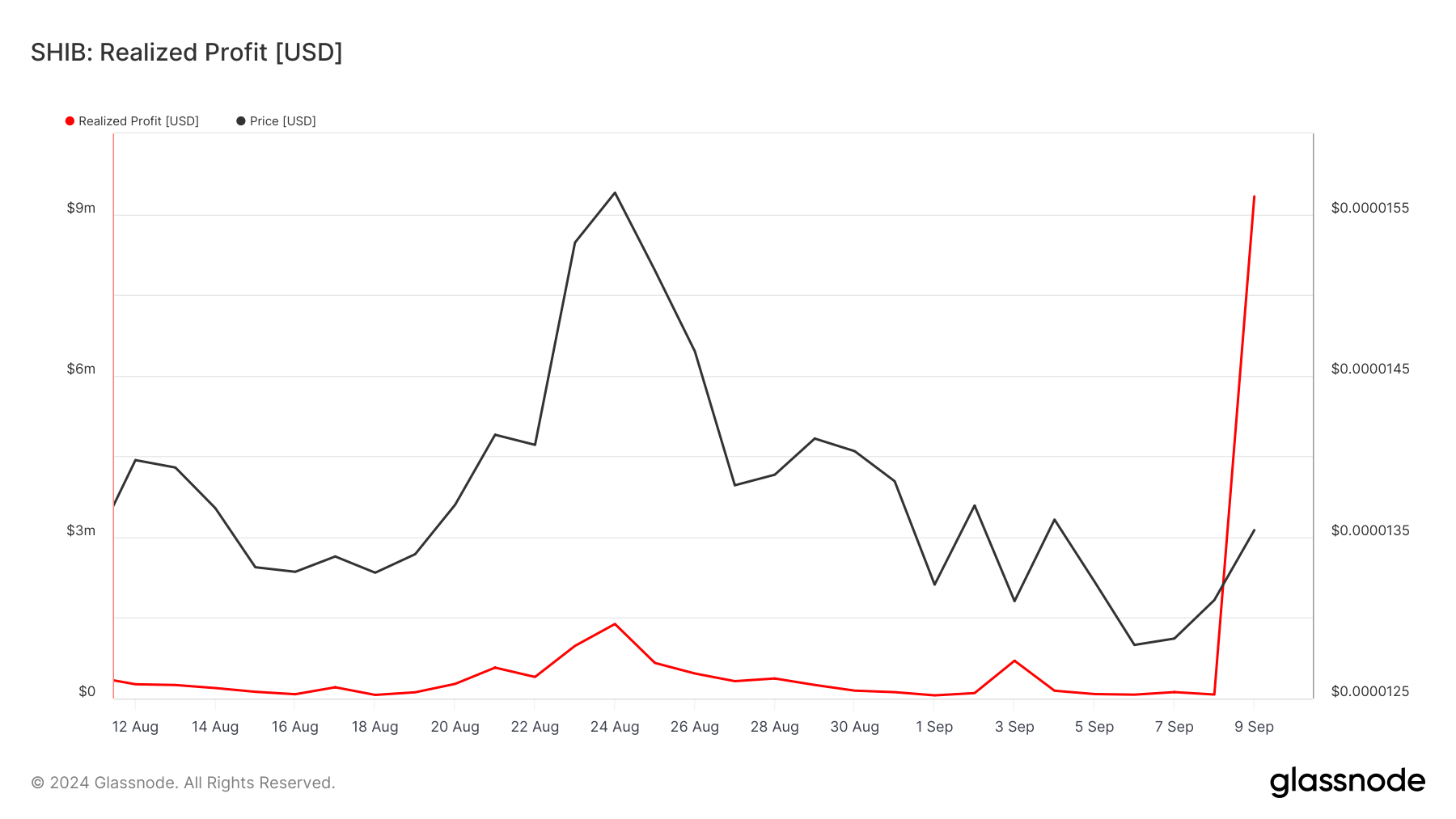 Shiba Inu’s recent price gains have driven market participants to lock in profits not seen in a long while. On September 6, SHIB’s price was $0.000012.