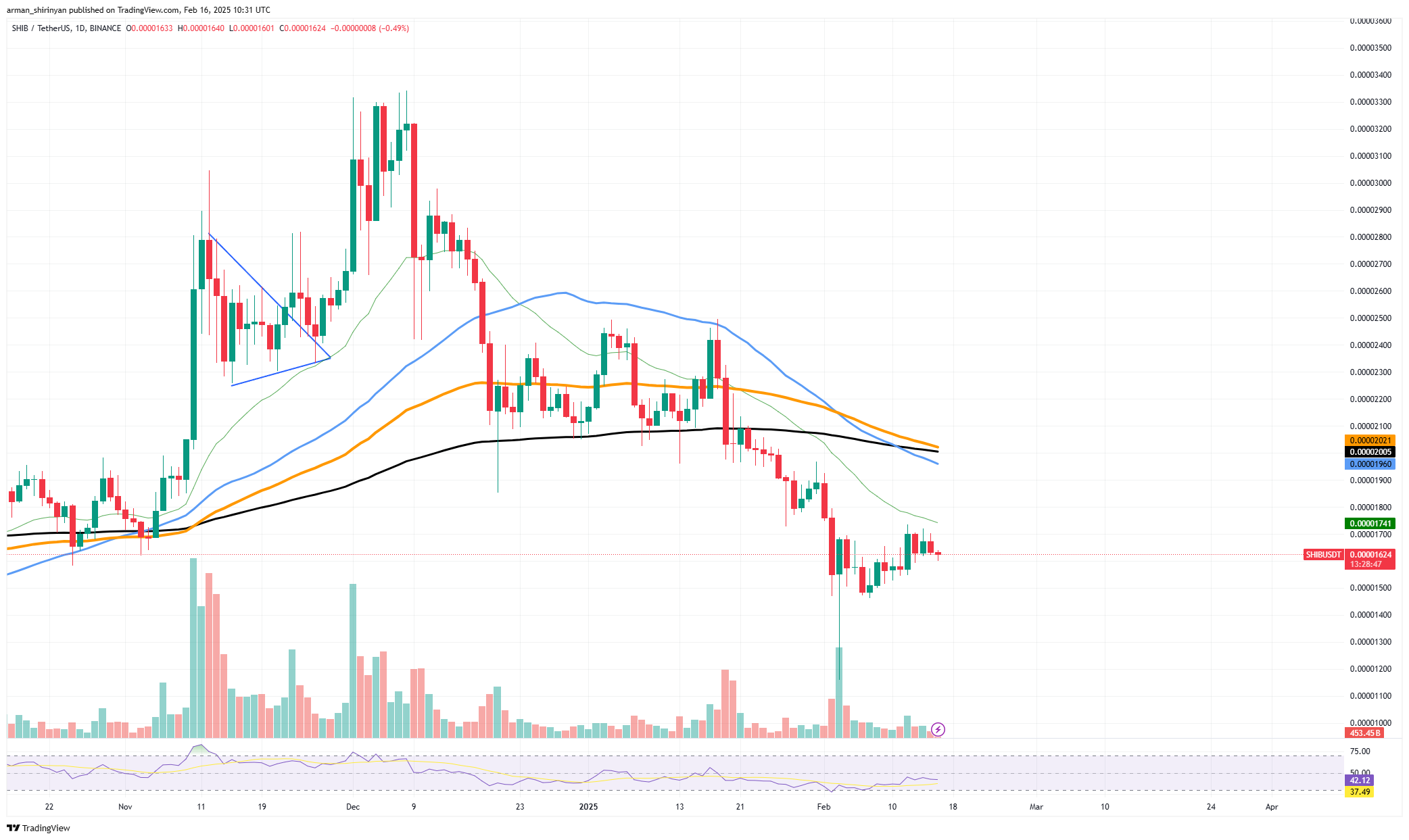 An important resistance level that might have indicated a possible recovery, the 26-day exponential moving average (EMA), was difficult for Shiba Inu to overcome, resulting in a setback. Although there have been early indications of stabilization following a protracted decline, SHIB’s failure to get past this obstacle raises questions about its immediate future. SHIB tried to pick up steam after its recent drop, testing the 26 EMA as a potential breakout launch point.