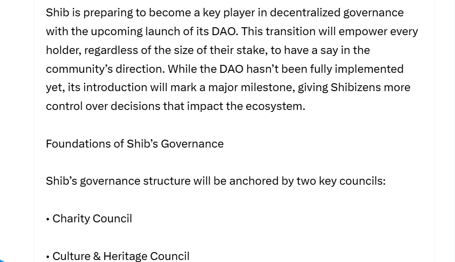 “[Shiba Inu] is preparing to become a key player in decentralized governance with the upcoming launch of its DAO. This transition will empower every holder, regardless of the size of their stake, to have a say in the community’s direction,” Lucie stated.
