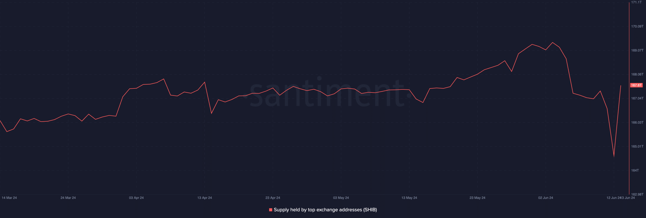 Top whale wallets that hold Shiba Inu [SHIB] across cryptocurrency exchanges have decreased their holdings since the end of May, according to Santiment’s data.