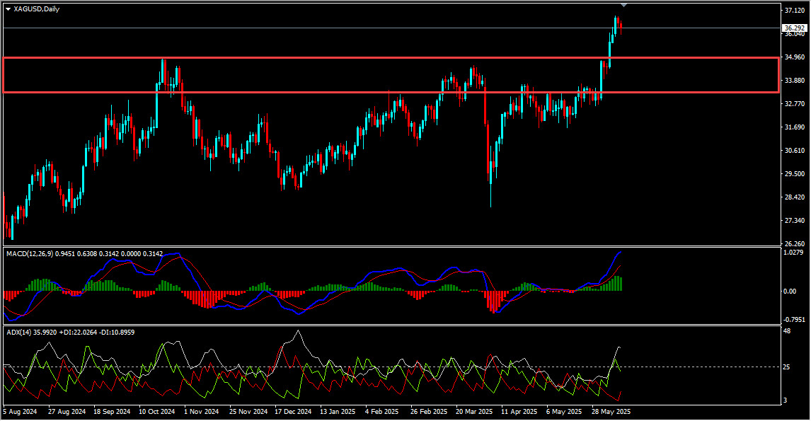 Silver D1(Daily) Chart Analysis – Higher Highs, ADX Indicator, Resistance Breakout