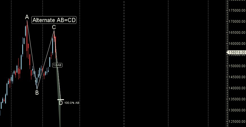 Price has completed its C Leg now break of 155 k can lead to a larger decline towards 144/140 K
