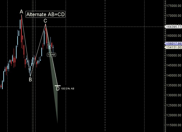 Price has completed its C Leg now break of 155 k can lead to a larger decline towards 150/144/140 K