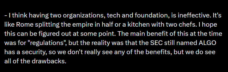 Jerry Chu, co-founder of real-world asset platform Lofty on Algorand, has voiced concerns about the organizational structure behind Algorand, noting inefficiencies in coordination between the Foundation and Algorand Technologies.