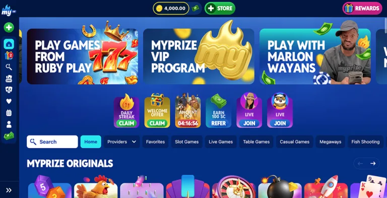 Where MyPrize US feels different is in its social layer. The built-in “Rooms” let you join streamers and play alongside other users, adding a shared experience you don’t usually get on sweepstakes casinos. With daily rewards, consistent promos, and a clear VIP system, it’s a strong pick if you want something more dynamic.