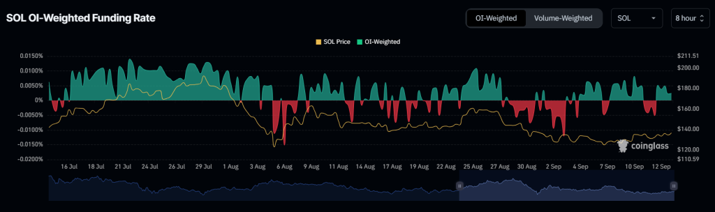 Additionally, SOL’s OI-weighted funding rate currently stands at +0.0024%, indicating a bullish outlook for Solana.