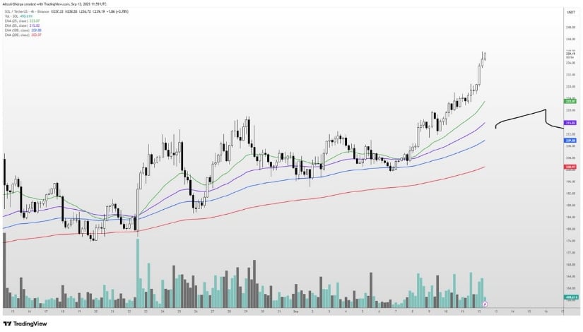 Solana builds a strong base above key moving averages, with analyst eyeing $250 as the next major test. Source: Altcoin Sherpa via X