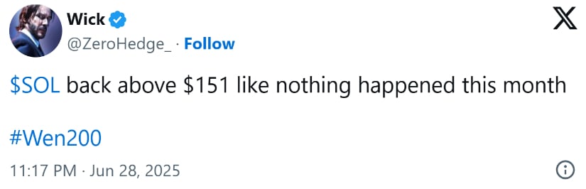 Solana’s confident recovery above $151 signals underlying strength. Source: Wick via X