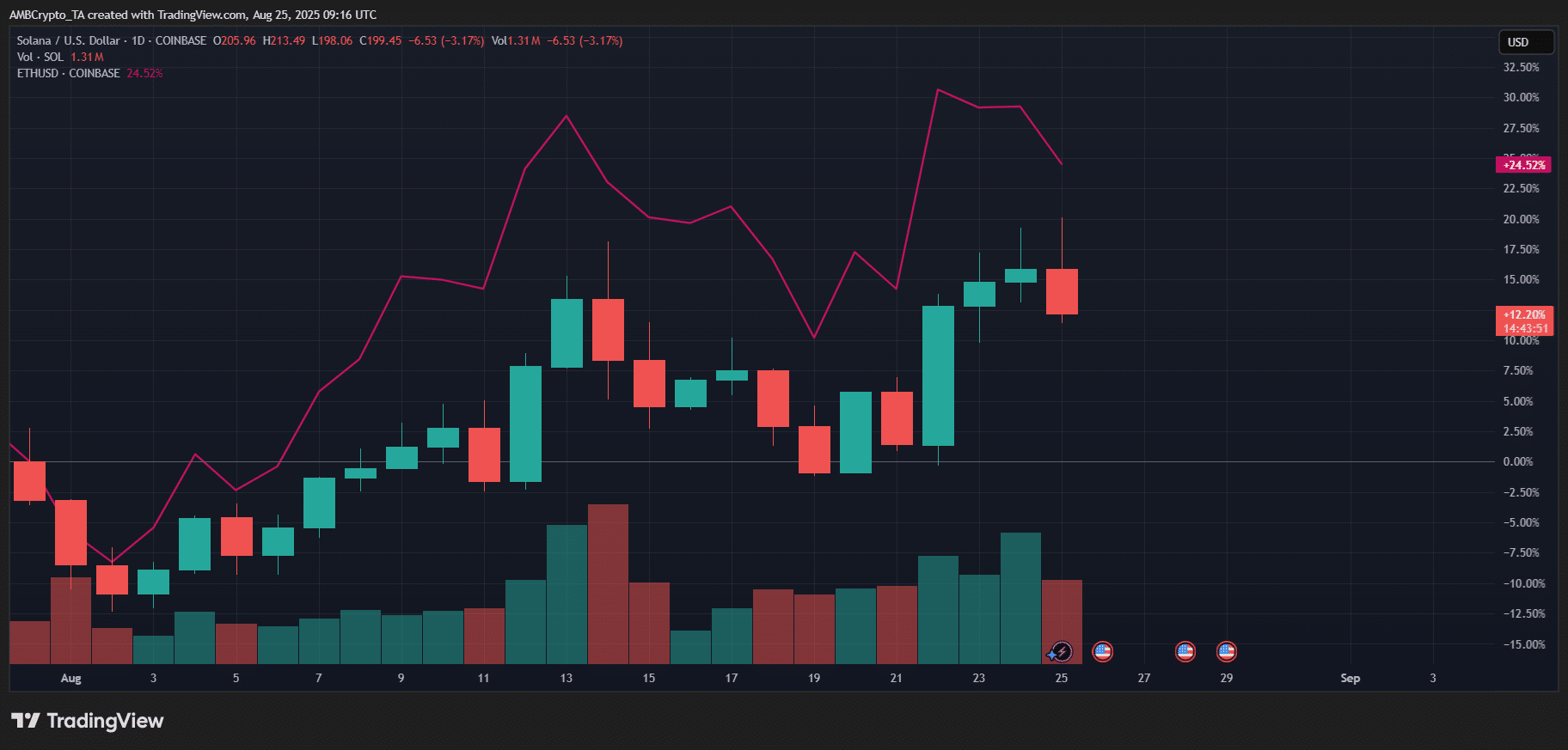 The real test now is whether SOL can sustain this momentum into September, or if ETH’s stronger gains will start to pull further ahead.
