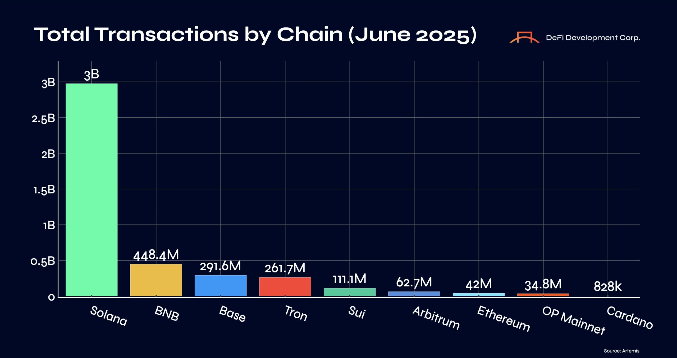 In June alone, the network processed over 3 billion transactions, processing an average of 1,157 transactions per second (TPS) – 2.4x more than all other chains combined.