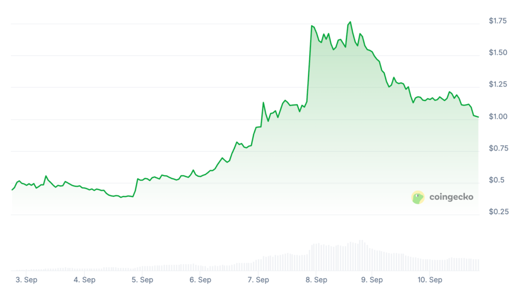 On September 5, just two days after launch, SOMI dropped to its monthly low of $0.38. This was its first real tes. However, the token quickly bounced back and reached its monthly high of $1.84 on September 7. That is a huge recovery in only four days, marking a gain of over 380% from the bottom.