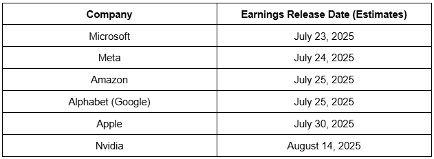 Other Dates for the ‘Mag 7’ stocks earnings releases: