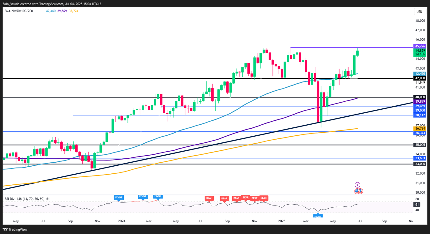 Dow Jones Weekly Chart, July 4, 2025
