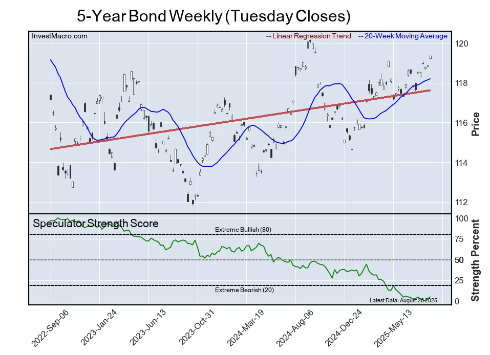 Next, the 5-Year Bond speculator position comes in as the fifth most bearish extreme standing for this week. The 5-Year speculator level is at a 5 percent score of its 3-year range.