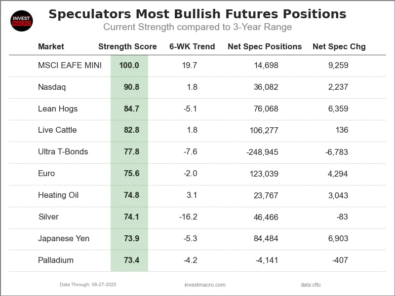 Speculator Extremes: EAFE, Nasdaq, FedFunds & WTI Crude lead Bullish & Bearish Bets