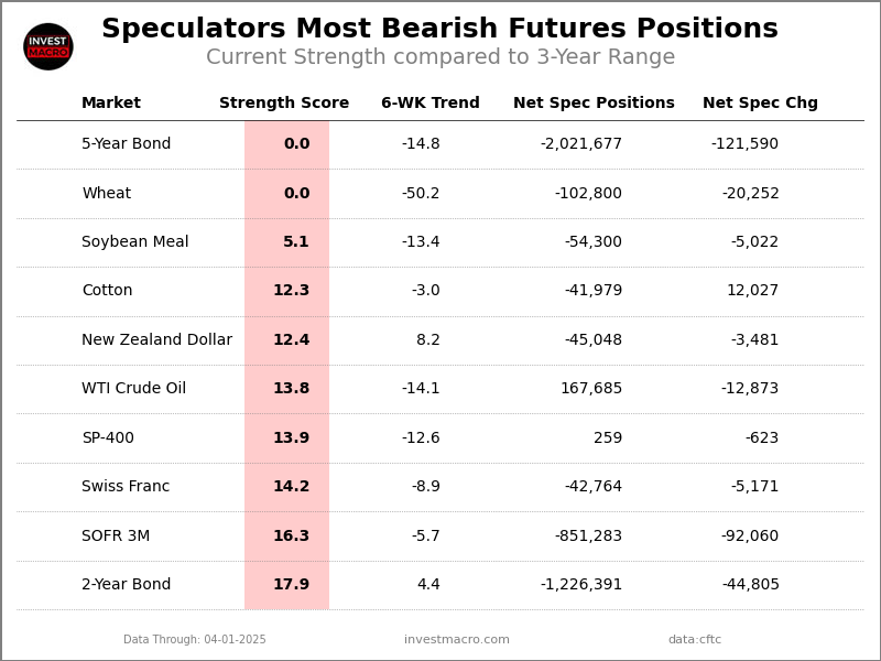 This Week’s Most Bearish Speculator Positions: