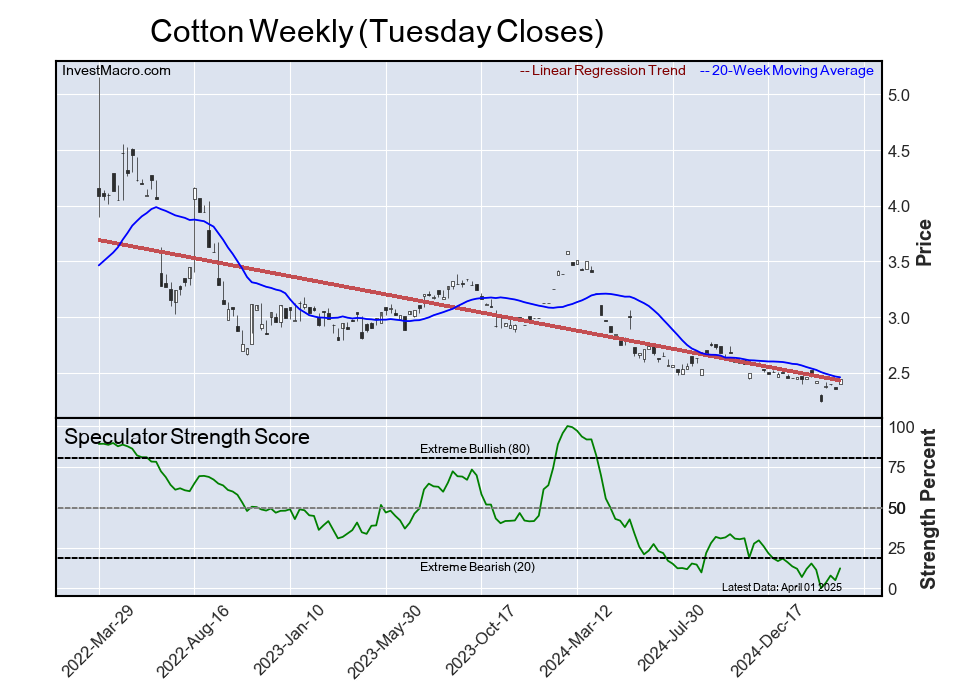 - COT Soft Commodities Charts: Speculator Bets led by Soybean Oil, Cotton & Soybeans Apr 5, 2025