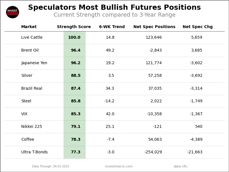 Speculator Extremes: Live Cattle, Brent, 5-Year & Wheat top Bullish & Bearish Positions