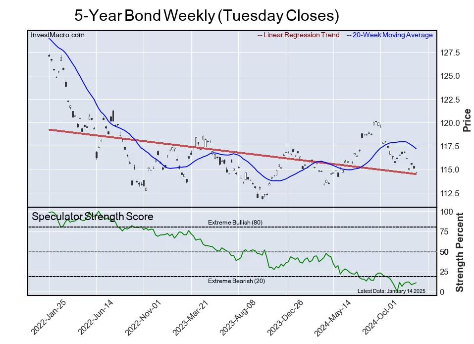 Finally, the 5-Year Bond speculator position comes in as the fifth most bearish extreme standing for this week. The 5-Year Bond speculator level is at a 10.9 percent score of its 3-year range.