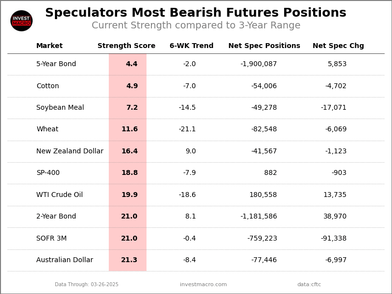 This Week’s Most Bearish Speculator Positions: