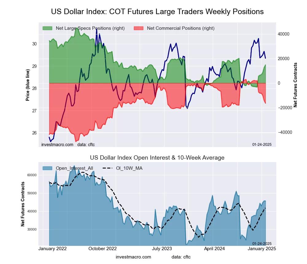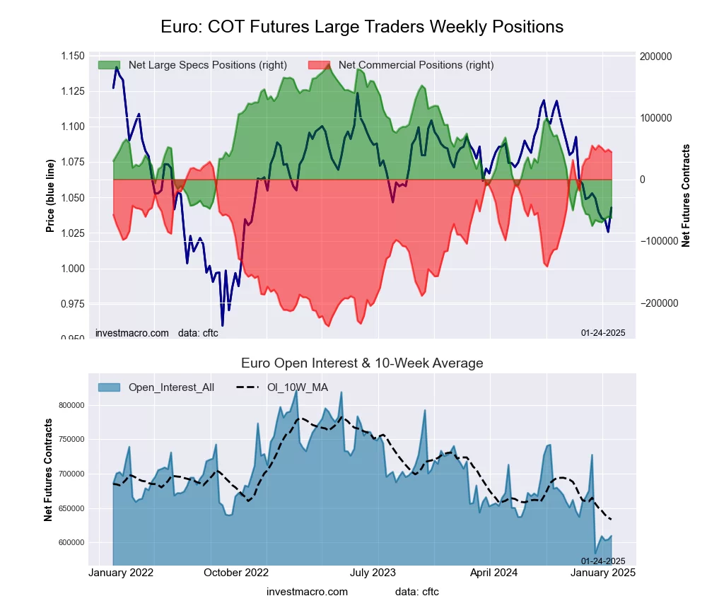 The latest COT data is updated through Tuesday January 21st and shows a quick view of how large market participants (for-profit speculators and commercial traders) were positioned in the futures markets. All currency positions are in direct relation to the US dollar where, for example, a bet for the euro is a bet that the euro will rise versus the dollar while a bet against the euro will be a bet that the euro will decline versus the dollar.