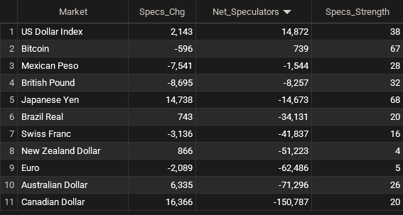Currencies Net Speculators Leaderboard
