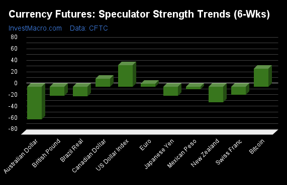 US Dollar Index & Bitcoin top the 6-Week Strength Trends