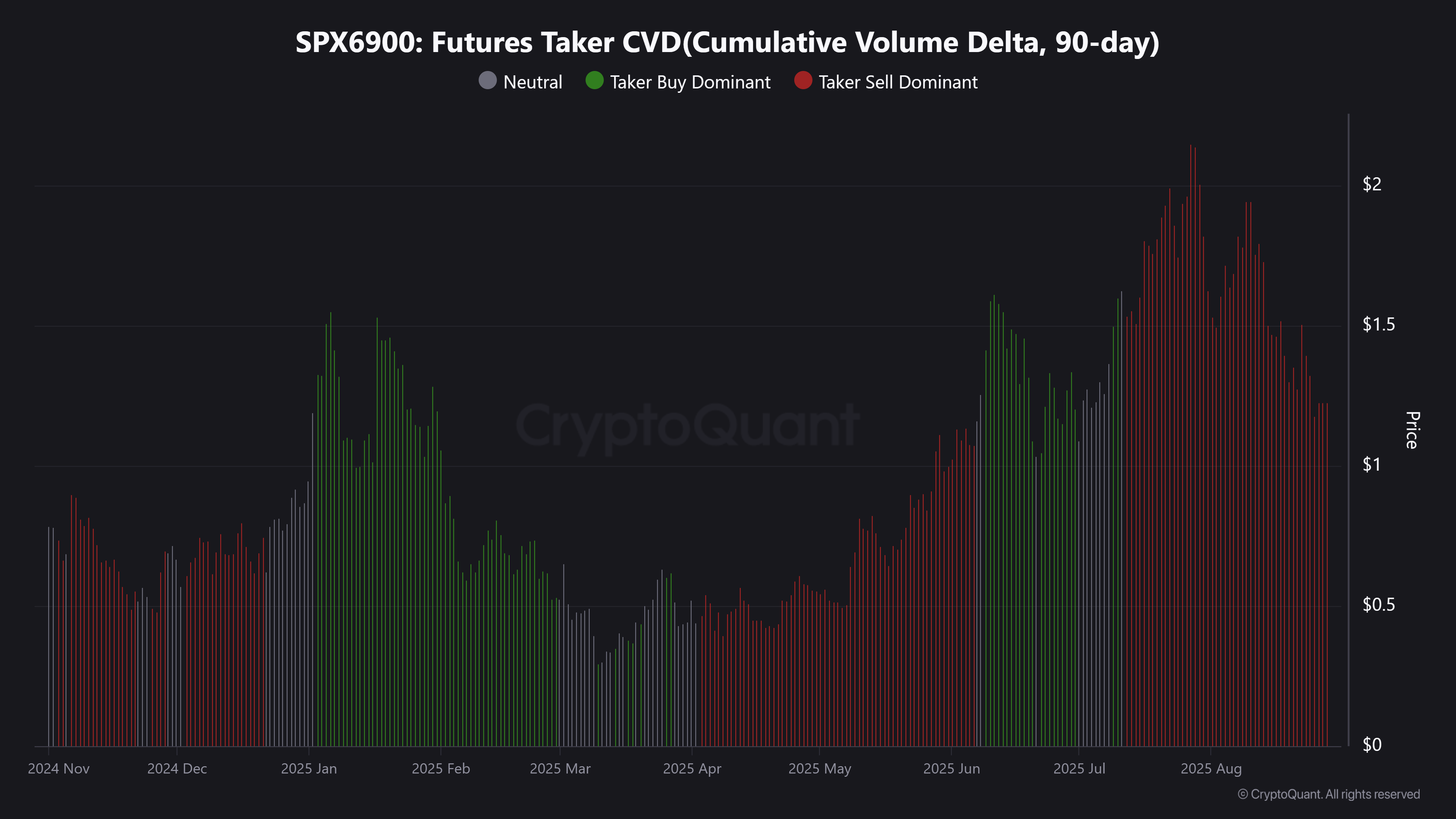 Still, the market bias is not entirely bullish. Spot trading remains dominated by sellers, and Futures data shows bears keeping the upper hand.