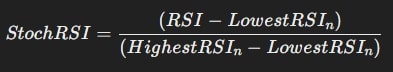 The formula for Stochastic RSI is: