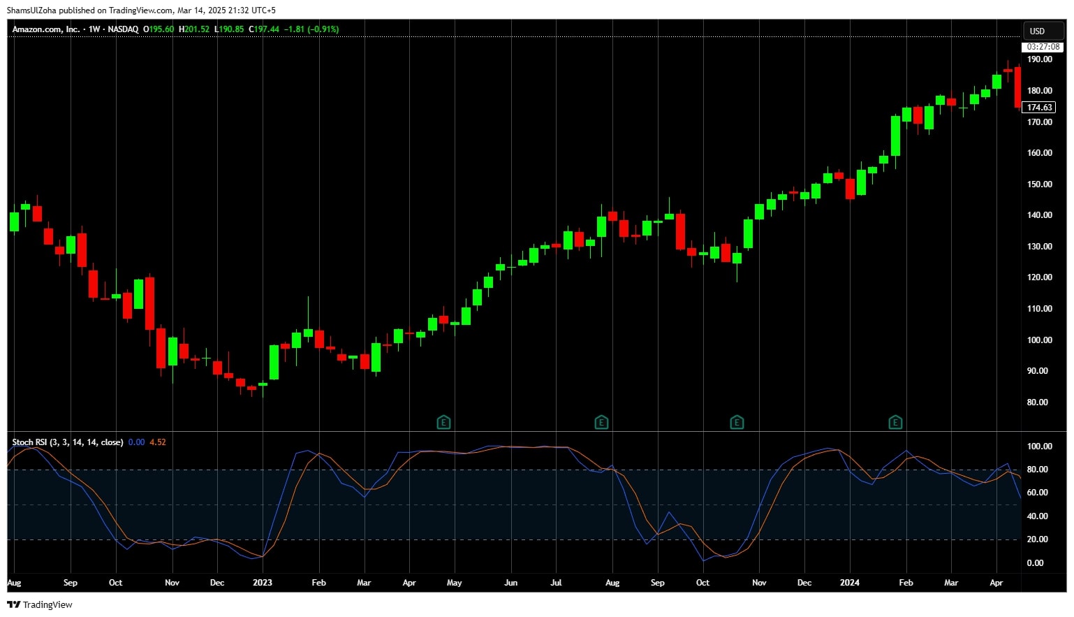 - Sell when Stochastic RSI rises above 80 near resistance levels.
