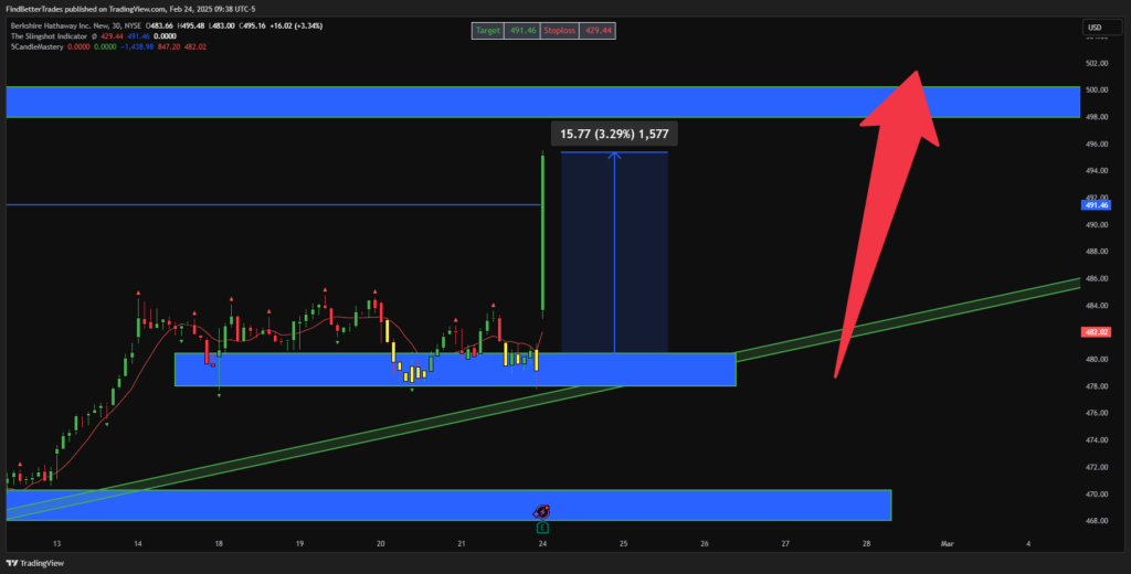 A notable pop from Berkshire Hathaway during the weekend sees the stock holding strong after record Q4 operating profits. We secured a 3.29% gain after the market opened today.