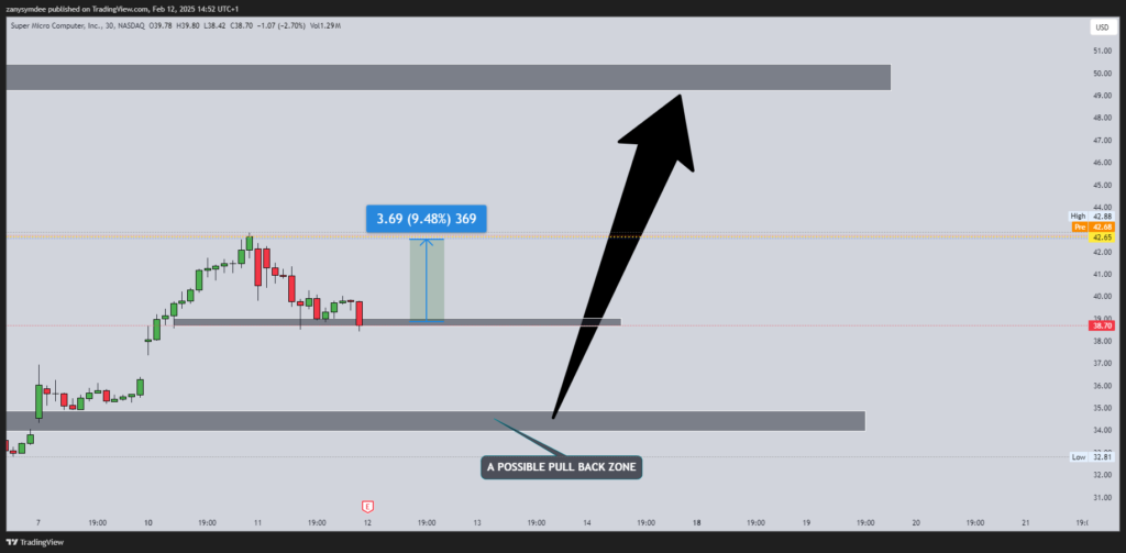A quick squeeze from SMCI after the earnings were reported just like we expected. The data report was enough to receive a nod of approval from investors, causing the stock price to jump +9.48% after the pullback close of the day. Congratulations to our members who held their positions overnight, trusting our analysis!