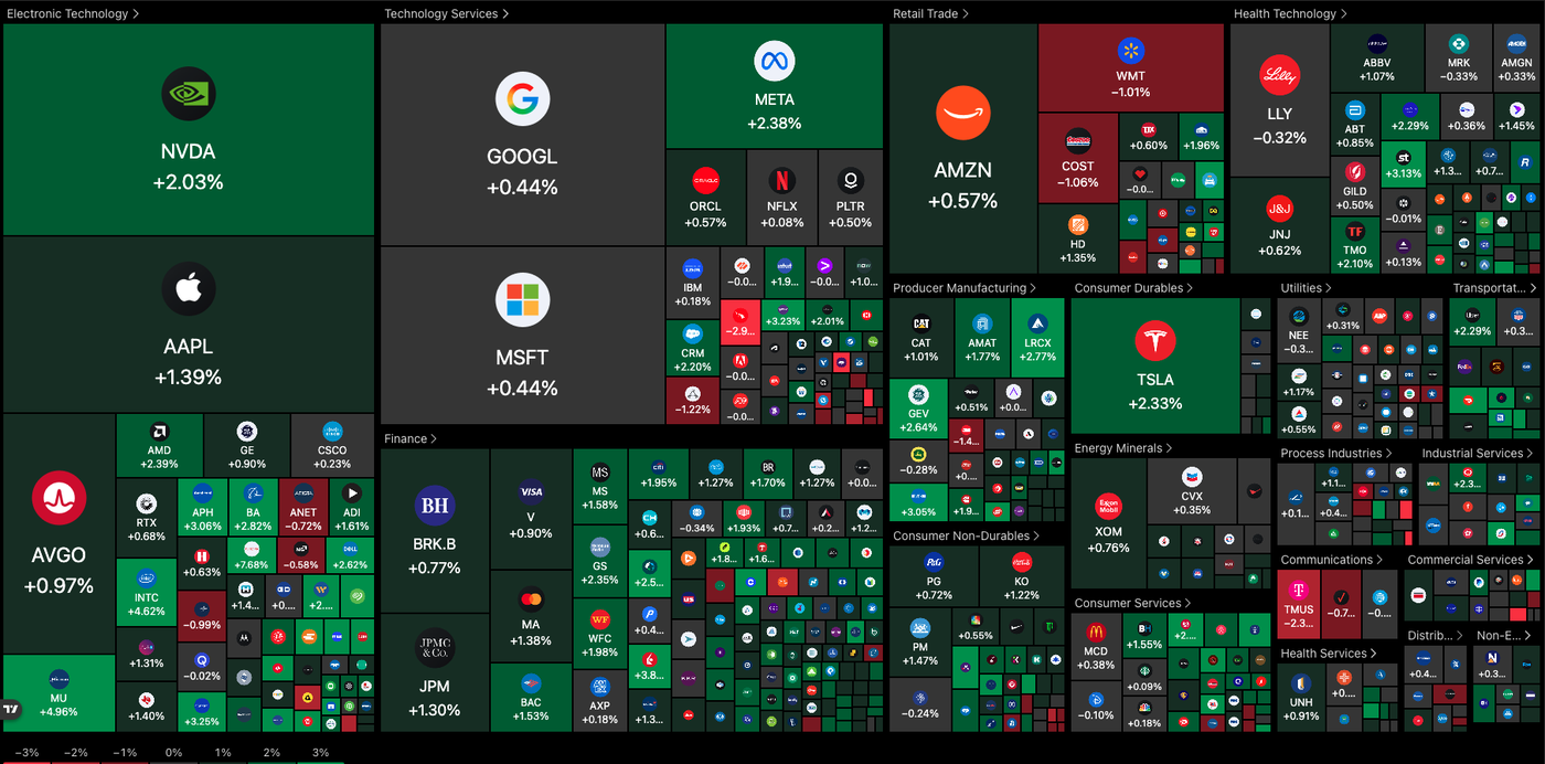 Electronic technology and transportations are leading to the upside – Tech and Finance remain the two most interesting sectors to watch in recent trading.