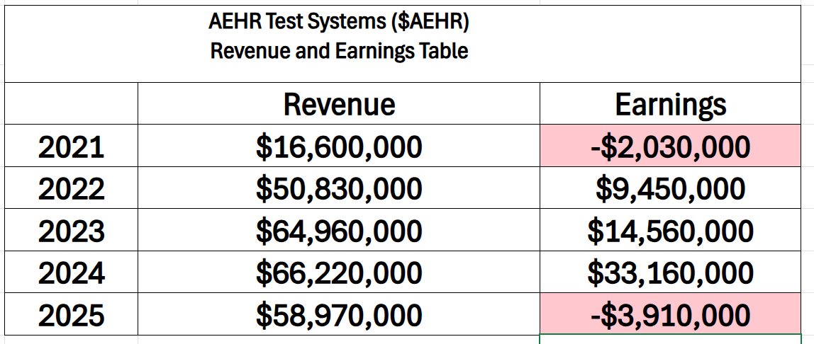 At $AEHR, the numbers tell a story that feels less like a straight line and more like a series of sharp turns, underscoring just how volatile the ride has been inside the finance department. Revenue has surged an impressive 255% over the past five years, a signal that demand for its test and burn-in solutions has meaningfully expanded, particularly alongside the electrification and semiconductor cycles. But earnings have refused to follow a neat trajectory, swinging from losses to profitability and back again, culminating in 2025, which marked the company’s weakest year on the bottom line despite still-elevated sales. Management has pointed to a combination of customer concentration, timing of large system orders, and ongoing investments in capacity and next-generation platforms as the primary drivers of that earnings compression, framing it less as structural deterioration and more as a transitional phase. The company has emphasized efforts to diversify its customer base, smooth revenue visibility, and improve gross margins through scale and product mix, while signaling that profitability should normalize as orders convert and utilization improves. Looking ahead to 2026, the expectation from management and the Street is for a return to positive earnings, with a rebound driven by resumed order flow and operating leverage finally beginning to assert itself.