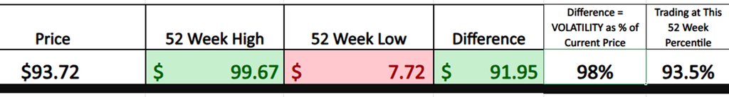 Now here’s where this becomes useful for traders instead of entertaining for critics. The difference between the most bullish target at $68 and the most bearish at $56 gives you a forward-looking volatility framework. That $12 spread, when measured against the current price of $96, implies expected volatility of roughly 12.81%. That is the market’s polite way of saying, “We don’t agree on direction, but we do agree it’s going to move about this much.” Since the Analysts missed the move they also missed the volatility and we will quickly come to see why this is important.