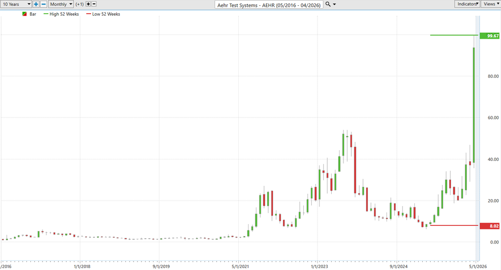 There are charts that whisper. There are charts that suggest. And then there are charts like this one that kick the door in, grab you by the collar, and say, “Pay attention.” $AEHR has just done something that doesn’t happen often and never quietly. It is printing a new 10-year high at the exact same time it is making a new 52-week high. That’s not coincidence. That’s confirmation. It means every bag holder from the last decade has either been paid, forgiven, or run over. There is no overhead supply left to argue with the trend. The past has been cleared out like a bad tenant.