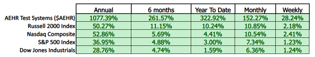 Next we compare the performance of $AEHR to the broader stock market averages.
