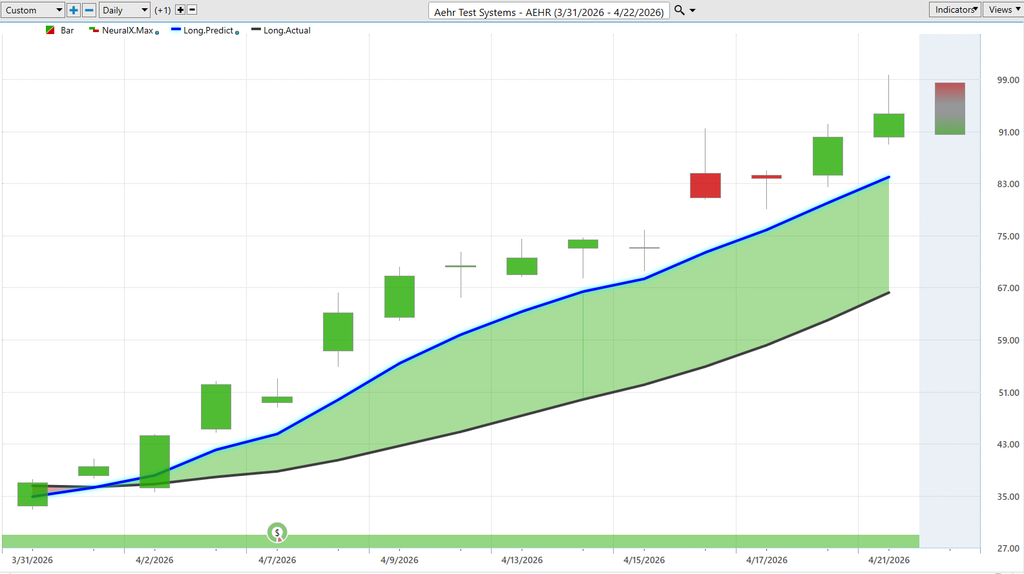 Finally, consider what happens when this alignment persists. A rising slope direction of the Predictive Blue Line combined with price holding above it creates sustained strength. Not temporary momentum. Sustained pressure. Short-term fluctuations will occur. The Neural Index may turn briefly. Daily ranges will expand and contract. But as long as the slope direction of the Predictive Blue Line continues higher, the message does not change. Strength builds on itself. And in a stock like $AEHR, that kind of structure has already shown it can produce fast, decisive moves once it gains traction.
