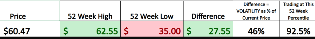 Start with the facts: $CCJ’s 52-week range stretches from a low of $33.45 to a high of $60.47. That’s a 43% historical volatility, a meaningful range that tells us a lot more than static earnings multiples or sentiment surveys. This isn’t just a chart. It’s a volatility profile. And as traders, that spread is our roadmap. It marks the boundaries of price discovery, investor sentiment, and market participation over the last year. But here’s the part that should really grab your attention: $CCJ is now trading in the 92nd percentile of that range.