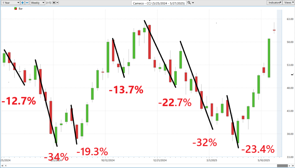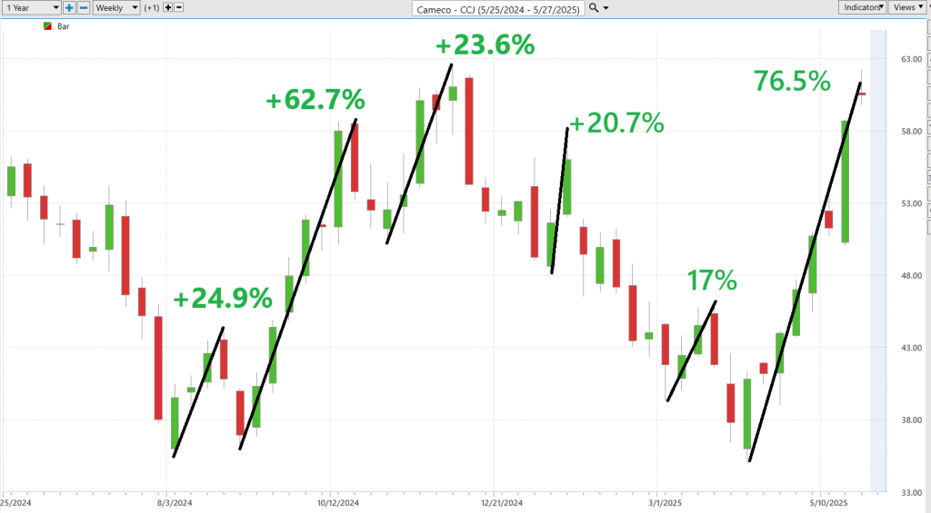 Because here’s the truth bomb: history doesn’t repeat, but it does rhyme. If $CCJ has ripped 76% higher in a matter of months before — and dropped 34% like a rock without warning — that’s not random noise. That’s your volatility blueprint. That’s the rhythm of the beast. And odds are, the next 12 months won’t look too different from the last 12, especially if the fundamentals are still in play.
