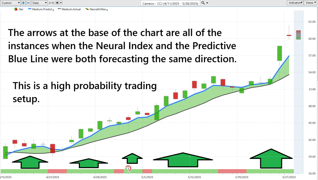 If you’re thinking about trading $CCJ, let me lay it out for you — Real success in the market comes from using real tools with real intelligence behind them. And that’s exactly what you get with VantagePoint’s Predictive Blue Line. It’s artificial intelligence with a purpose. A forward-looking, market-slicing signal that cuts through the Wall Street static and tells you when momentum is shifting before most folks even know what hit ‘em.