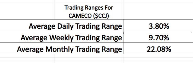 Here are the average daily, weekly, and monthly trading ranges for $CCJ over the past year. Pay attention — because in this market, knowledge isn’t just power. It could be profit.