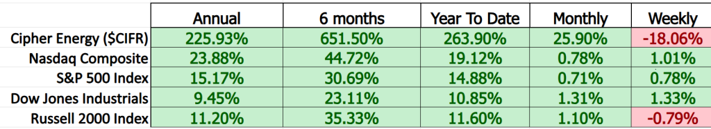 Next we compare Cipher Mining ($CIFR) to the broader stock market averages.