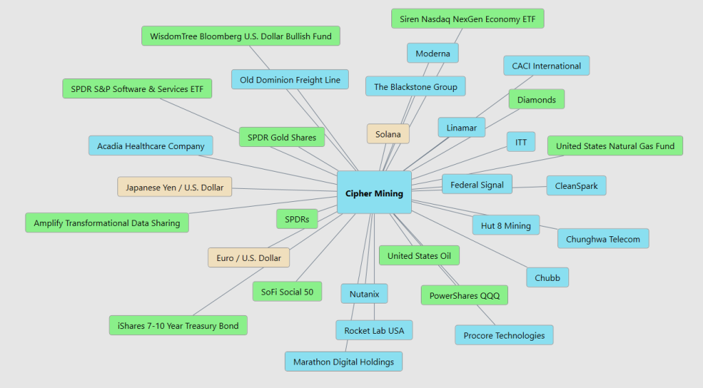 Here are the 31 key drivers of $CIFR price action. I recommend studying the chart and familiarizing yourself with these assets. You are bound to find a few gems.